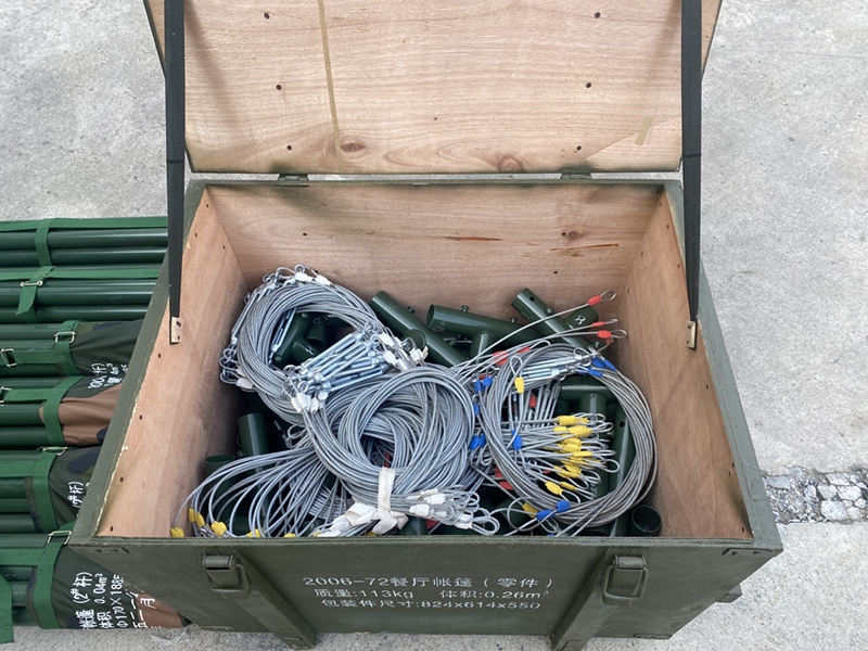 尺 寸:10*7.2*1.95 *3.63m 外帐布料:600D涤纶草绿PU涂银防水牛津布 内帐布料:150D漂白涂银涤纶牛津布 地布:420gPVC双面涂塑布 结构:双坡顶框架结构 重量:410.2kg 包装体积:0.9m³ 配件:铁锤、地桩、地钉、风绳