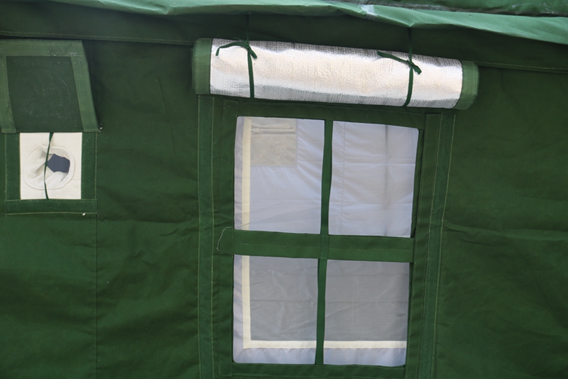 尺寸:6.6*4.6*1.8*3.02m 外账布料:28*2/2涤纶草绿色防水帆布 结构:双坡顶框架结构 内账布料:涤纶阻燃平白布 重量:230.0kg 保温材料:金属镀膜化纤针刺毡 包装体积:0.82立方米(3个包+4个杆件 ) 配 件:铁锤、地桩、风绳
