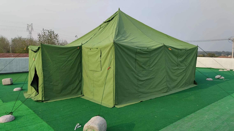 尺寸:4.87*4.87*1.75*3.5 m 布料:380g80/20涤棉防水帆布 保温材料:300g绗棉 内衬:210D 白色牛津布 结构:立杆结构 地布:可配 重量:130kg 包装:2个包装 配件:铁锤、风绳、地桩