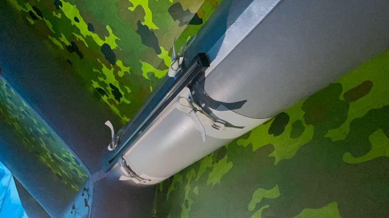 尺寸:5.5*10.5*2.1m 布料:1000D750g迷彩PVC刀刮布 结构:pvc一体式气柱 地布:650g灰色PVC 配件:打气筒、风绳、地钉