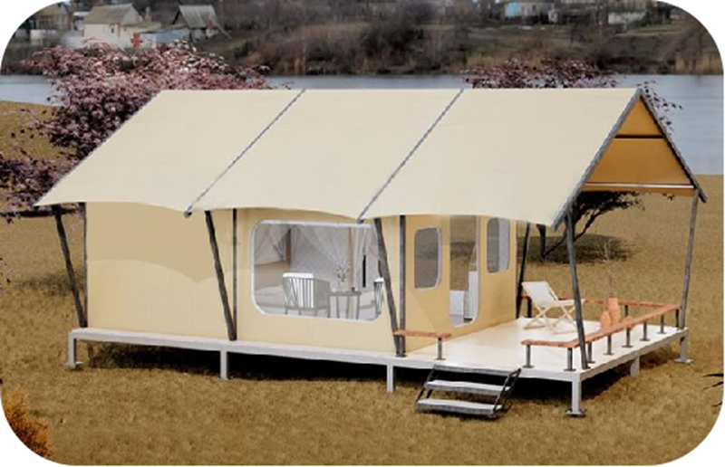 尺寸:10*5m 外帐布料:750g卡其色张拉膜 内账布料:900D卡其色加密牛津布 主 杆:78mm合成防腐木 连 接 杆:78mm钢管,壁厚2.0mm 配 件:不锈钢螺栓、燕尾钉、风绳