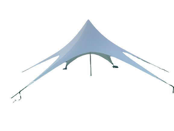 尺寸:5.4*4.2m 布料:210D米白色黑胶牛津布 结构:立杆支撑 杆件:分段式天幕杆管 重量:4kg 配件:地钉、铁锤