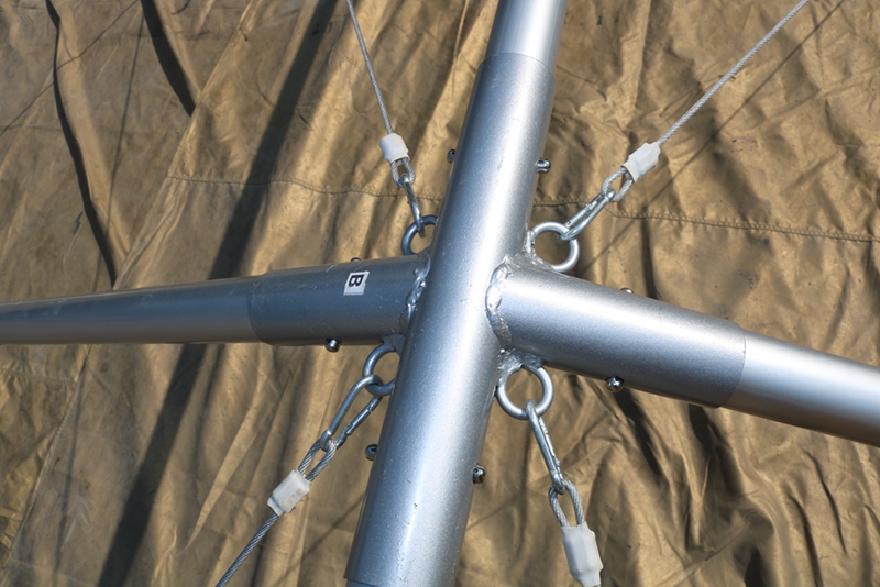尺寸:10*5*2*2.8m 布 料:600g 军绿色PVC 结构:框架结构 内衬面料:210D 白色牛津布 重量:260kg 地 布:600g 军绿色PVC 配件:铁锤、风绳、地桩