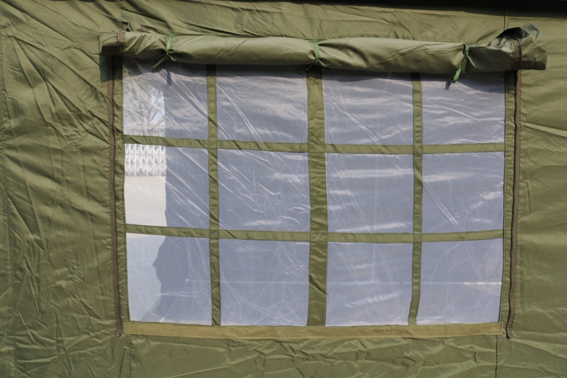 尺寸:4*3*1.8*2.67米 布料:600D草绿牛津布pvc涂层 结构:框架式结构 重量:55kg 包装:2个包装 配件:铁锤、风绳φ4mm*8根、地桩300*30*3mm*8个