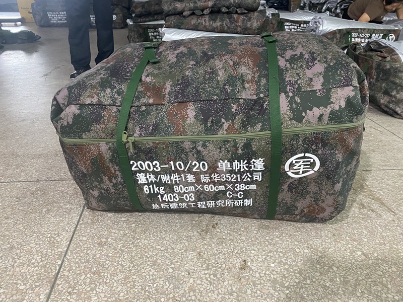 尺寸:4.6*4.6*1.4*3.1 m 外账布料:600D涤纶迷彩涂层布 结构:立杆结构 内顶布料:150D白色镀铝牛津布 重量:72.5kg 地 布:400g草绿双面涂塑布 包装体积:0.217m³ 配件:铁锤、风绳、地桩