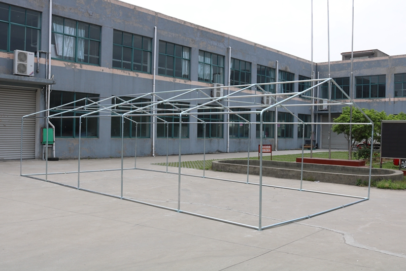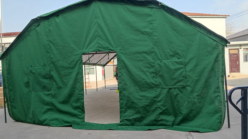尺寸:10*6*1.9*3.1m 布料:28*2/2草绿防水帆布 结构:框架结构 保温材料:300g针刺毡 重量:600kg 包装体积:8个包装 配件:铁锤、风绳、地桩