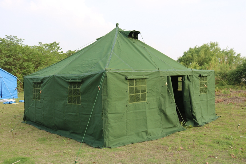 尺寸:4.87*4.87*1.75*3.5 m 布料:380g80/20涤棉防水帆布 保温材料:300g绗棉 内衬:210D 白色牛津布 结构:立杆结构 地布:可配 重量:130kg 包装:2个包装 配件:铁锤、风绳、地桩