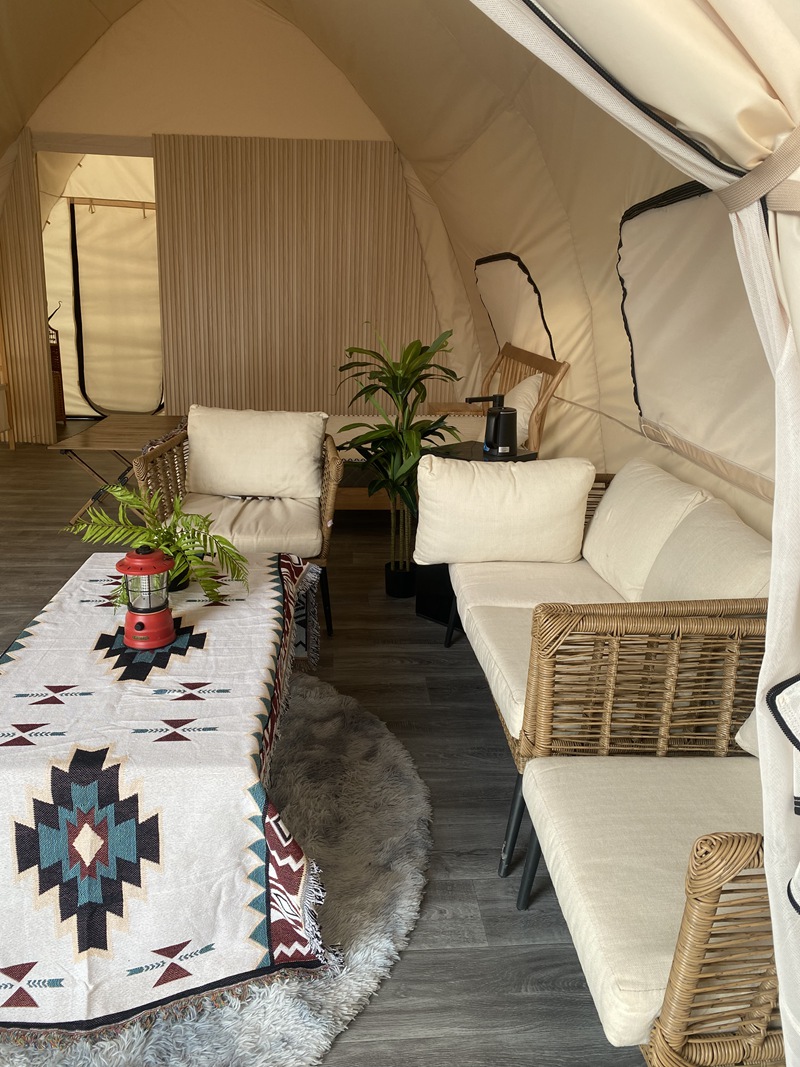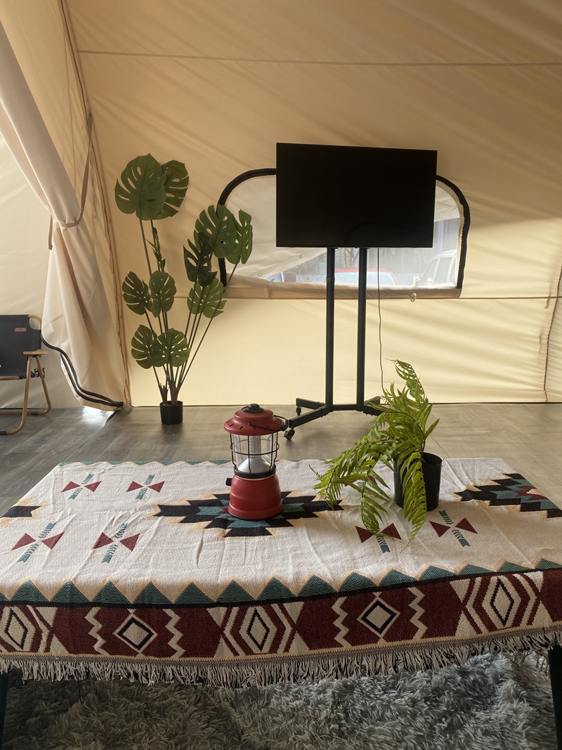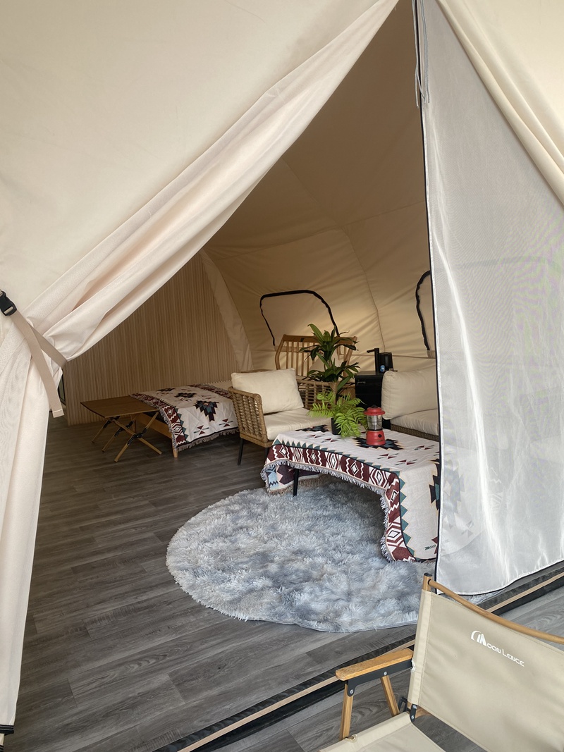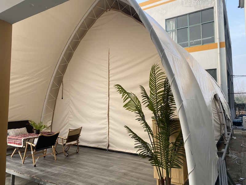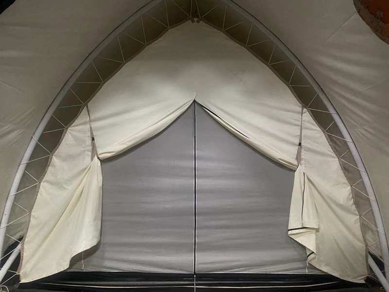 尺寸:10*5m 天幕布料:750gPVC张拉膜 内账布料:900D米卡其色牛津布 (防水压防紫外线阻燃防,防霉防蚊虫) 主杆:76mm镀锌钢管,壁厚1.5mm 连 接 杆:83mm钢管,壁厚2.0mm